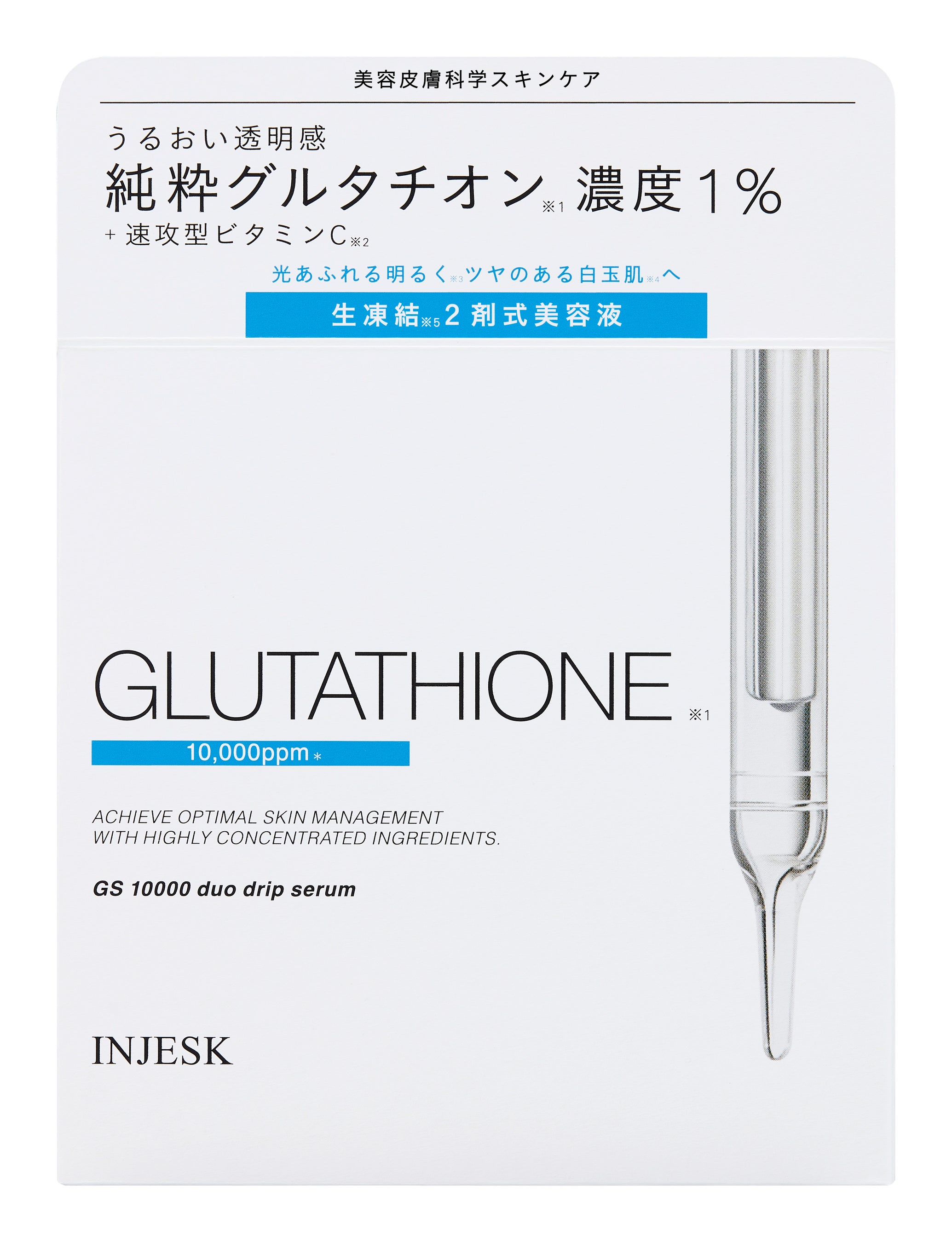 水に触れると酸化が進み、独特のニオイが発生するグルタチオン※5を酸化させずに届けるためにフリーズドライでパウダー化。速攻型ビタミンC※7配合のリキッドと混ぜ合わせる2剤式です。