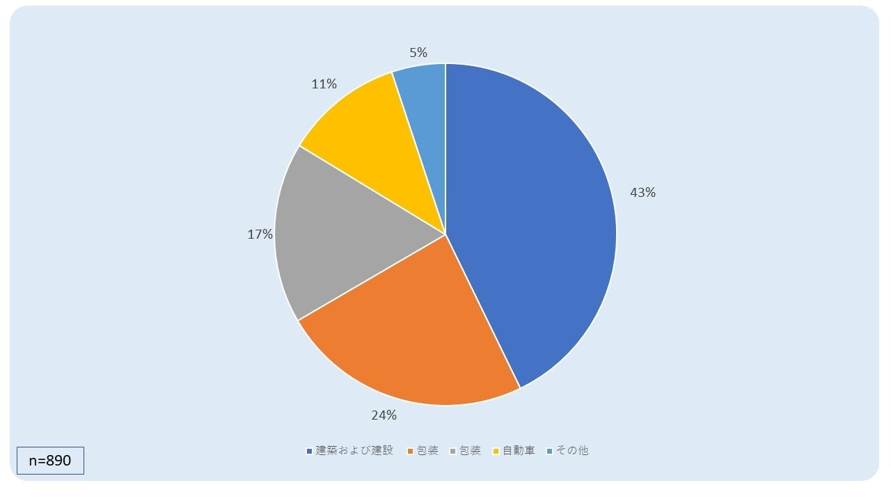 - エンドユーザー業界別では、建築および建設業界がアクリル樹脂の最大の消費者であり、42.8%の回答者がこの業界を主な顧客としています。次いで包装が23.8%、電子機器が17.1%で続いていました。自動車産業は市場の11.2%を占め、その他の産業は5.1%となりました。