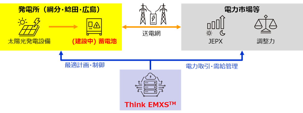 本件は、昨年九州エリアで運用を開始した再エネ併設蓄電池案件※3に次いで、当社独自のエネルギーアセット最適運用支援システムThink EMXS™※4が導入される第2号案件となります。先行案件のノウハウや本案件での運用改善によりThink EMXS™を進化させ、FIP収入の最大化および需給調整市場における収益向上を実現します。