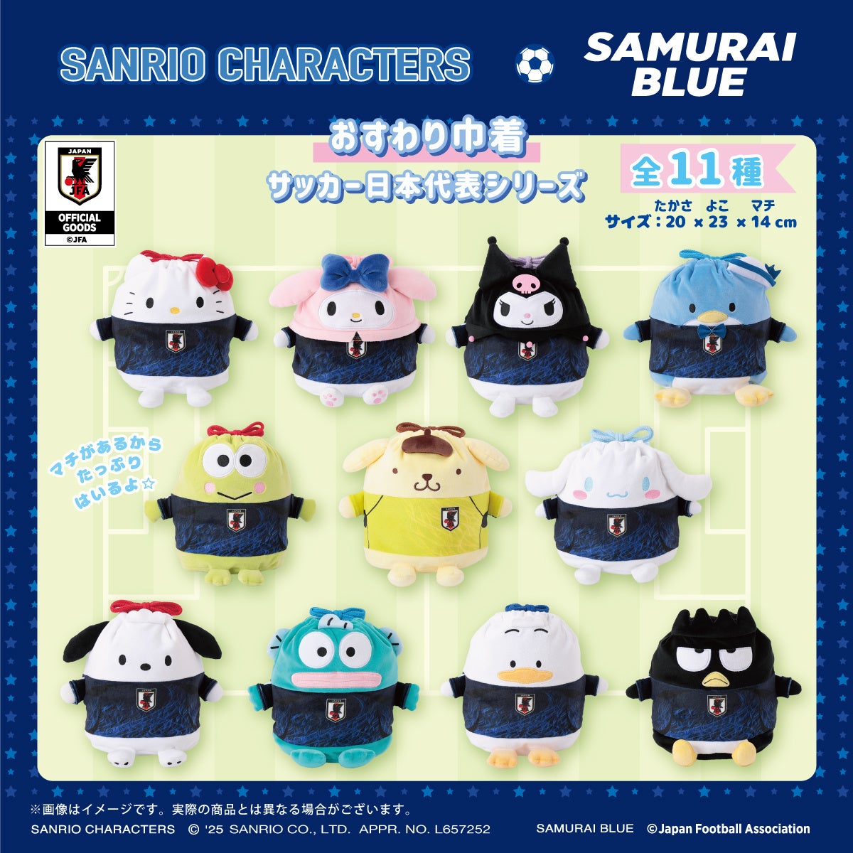 『サンリオ サッカー日本代表シリーズ』が 3月14日(金)~むにゅぐるみパティオ一部対象店舗、POP UP STORE&ECで販売決定!