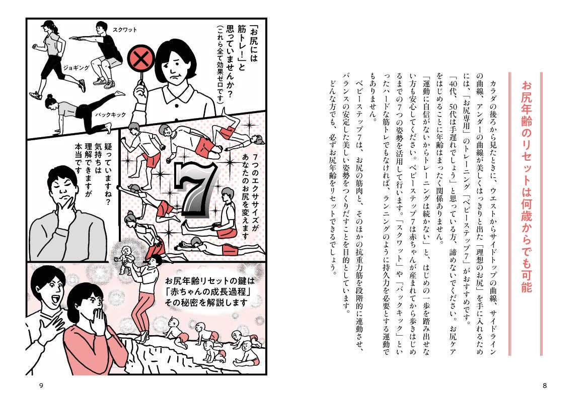 本書では、3万人以上のお尻を改善してきたヒップアップアーティスト・松尾タカシ氏が考案したエクササイズ「ベビーステップ7」を使って、お尻年齢をリセットする方法を解説していきます。