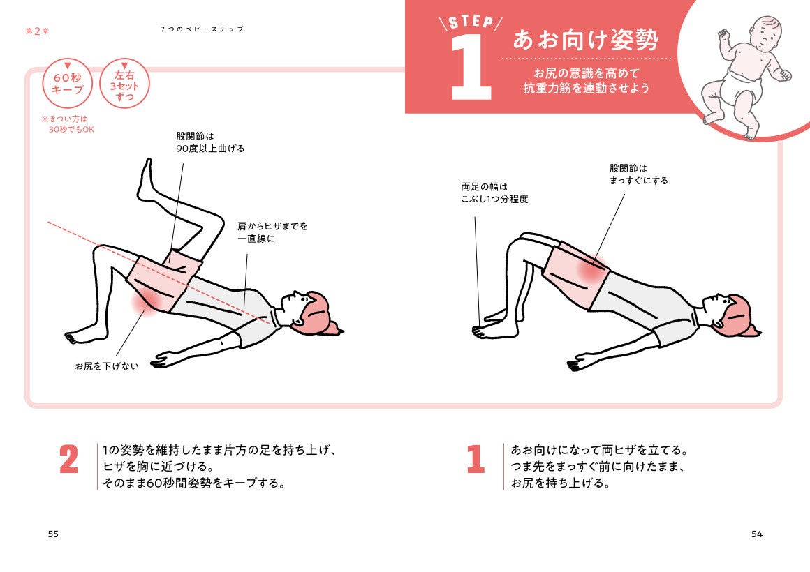 ベビーステップ7は、人間の赤ちゃんが生まれてから歩きはじめるまでの成長7姿勢に着目したお尻専用エクササイズ。 お尻の筋肉とそのほかの抗重力筋を段階的に連動させるため関節への負担を最小限に抑えながら、バランス力のある安定した姿勢の再現性を獲得できます。