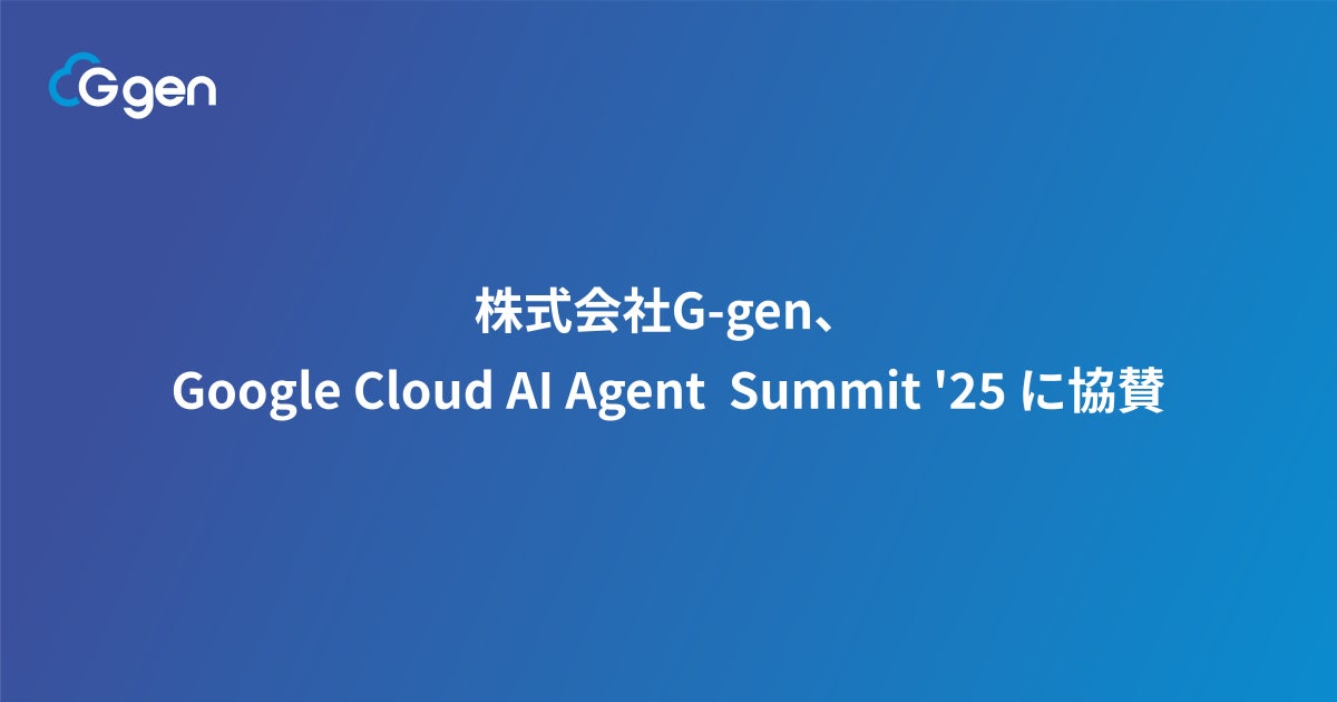 株式会社G-gen(本社:東京都新宿区、代表取締役:羽柴孝、以下G-gen)は、2025 年 3 ⽉ 13 日(木)に Google Cloud AI Agent Summit '25 (主催:グーグル・クラウド・ジャパン合同会社) に協賛いたします。