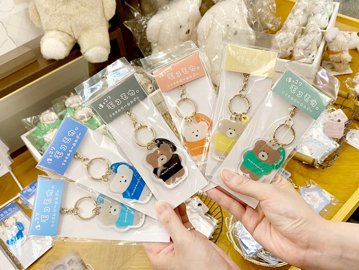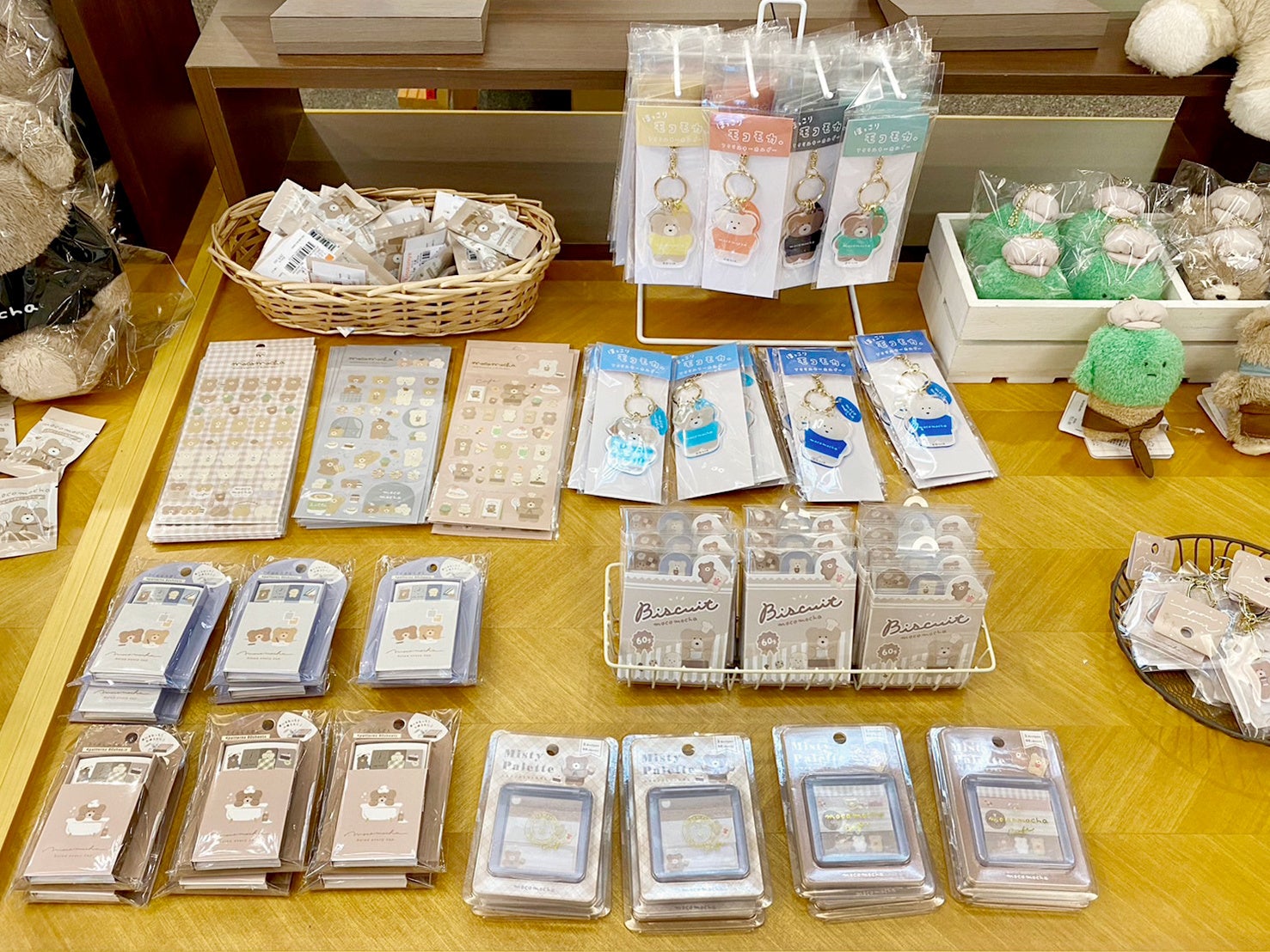 ミルクティーのようにやさしい色合いが魅力。ぬいぐるみ、ポーチ、キーホルダーなど豊富なラインナップで日常生活に使いやすい「ほっこりモコモカ」アイテムをご用意しました。おでかけの時やお家でほっこりするひと時に、ぜひお使いください。