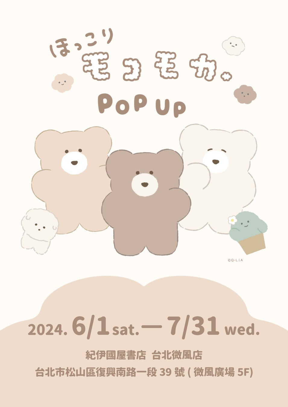 株式会社マリモクラフト(本社:東京都江東区)は人気キャラクター「ほっこりモコモカ」の期間限定POP UPを紀伊國屋書店 台北微風店にて、2024年6月1日(土)から7月31日(水)まで開催いたします。