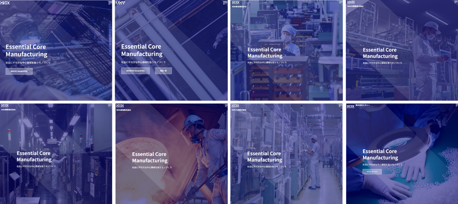 2025年4月のNOK株式会社のコーポレートサイト刷新に続き、今回、日本国内のグループ会社へ対象を広げました。コーポレートカラーを基調とした統一デザインとナビゲーションの採用により、視認性と操作性を高め、グローバル展開にも対応した情報発信基盤を構築しています。これにより、グループ全体の訴求力向上と認知拡大を図ります。