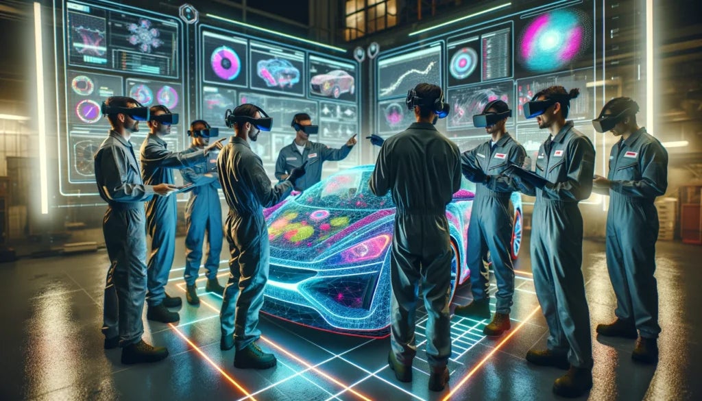 3Dスキャニングによって得られたデータにより、仮想空間にゼブラパターンが投影された車体ボディを表示。リモートバーチャル環境でありながら、現場で傷などチェックしているのと同じ状態を目の前で確認することが可能です。