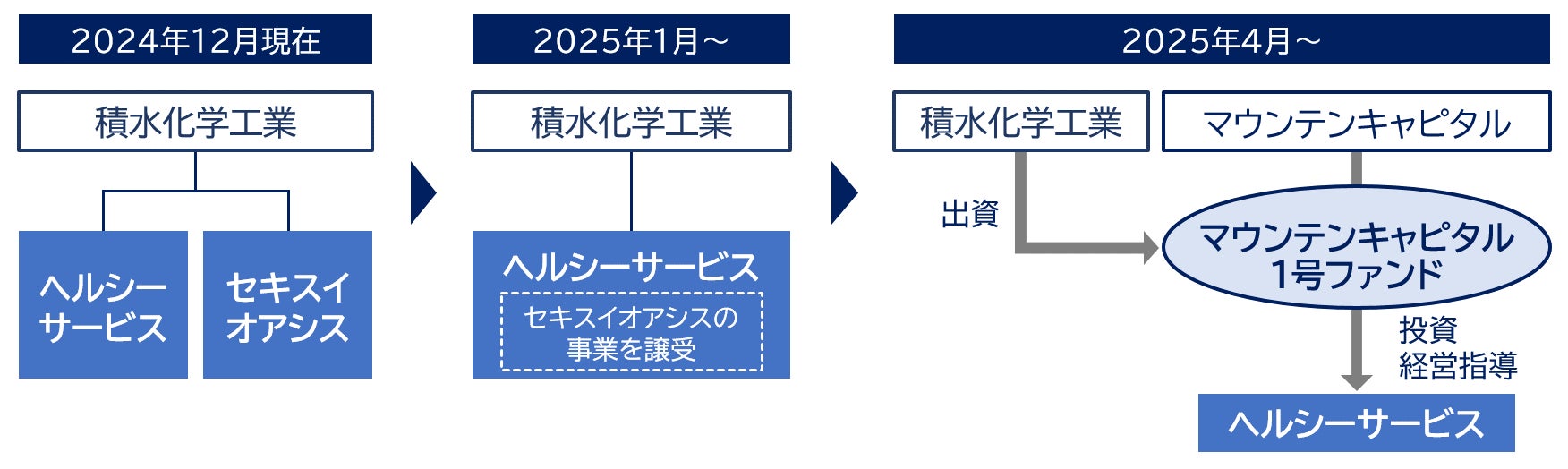 今般、セキスイオアシスの事業を2025年1月にヘルシーサービスに譲渡した後、2025年4月を目途に、ヘルシーサービスの全株式をマウンテンキャピタル1号ファンドに譲渡し、高齢者事業への直接的関与から間接的関与に移行いたします。