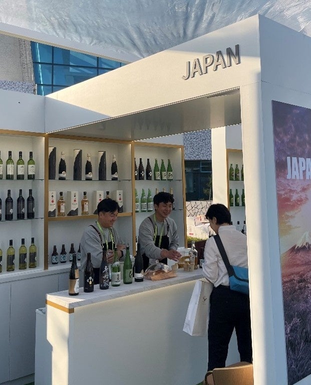 韓国の酒類輸入企業THE VIN CSR社と協業し、本フェアでは清酒「菊盛 純米酒」や「日の丸ウイスキー Signature 1823」を日本代表として出展しました。