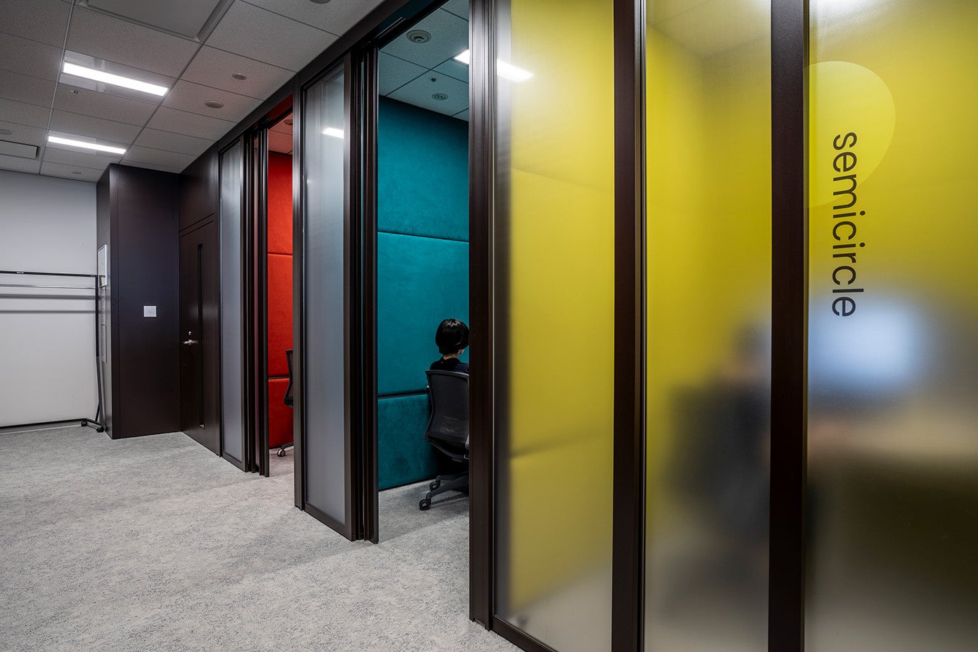 個室やブースを設け、上司と部下が1対1で対話を行う1on1の取り組みを行っています。Web会議や電話対応、集中作業を行う際にも利用可能です。