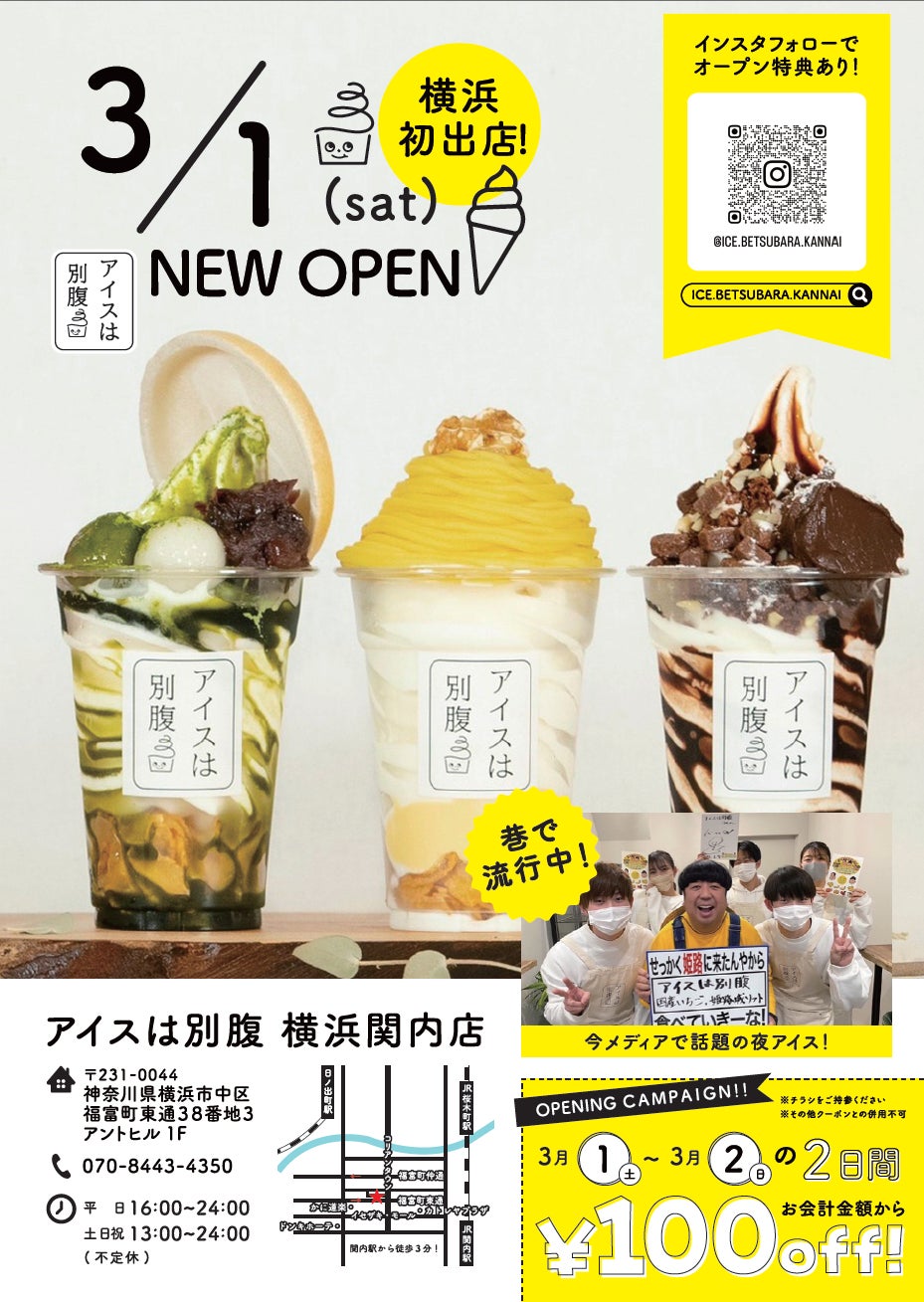 横浜初上陸!1日最高780個販売“夜パフェ専門店”「アイスは別腹 横浜関内店」3/1(土) グランドオープン!!JR関内駅から徒歩4分!