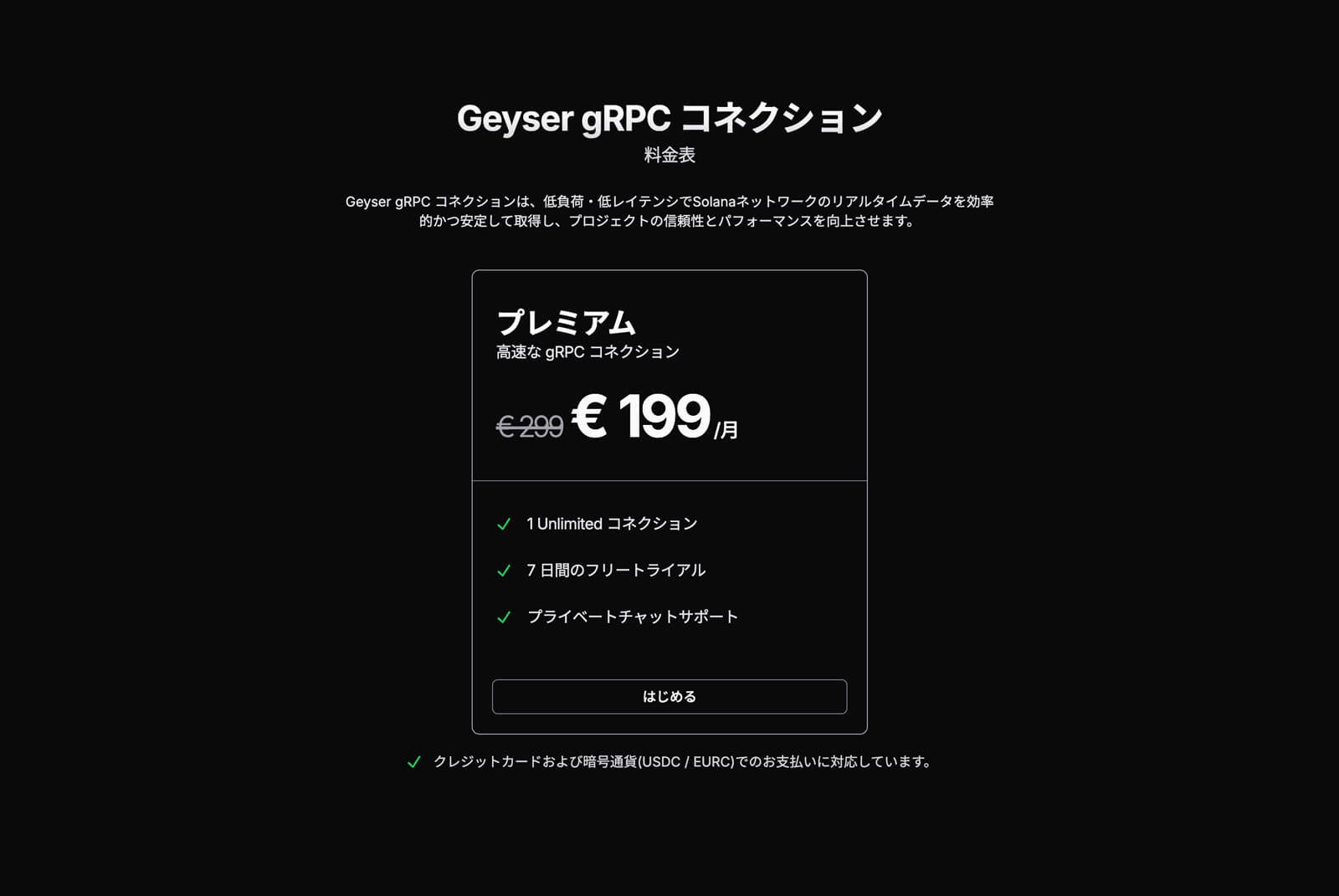 現在、Geyser gRPC コネクションのプレミアムプランを特別価格で提供しております。