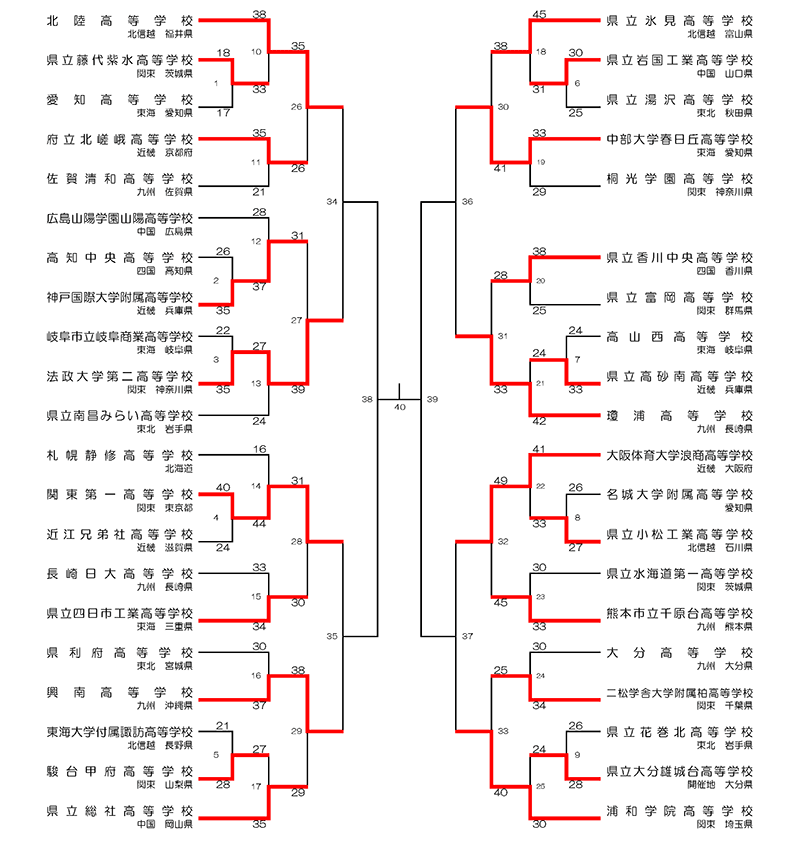 男子は、各ブロックの上位校が順当に勝ち上がり、準々決勝進出校が決定しました。