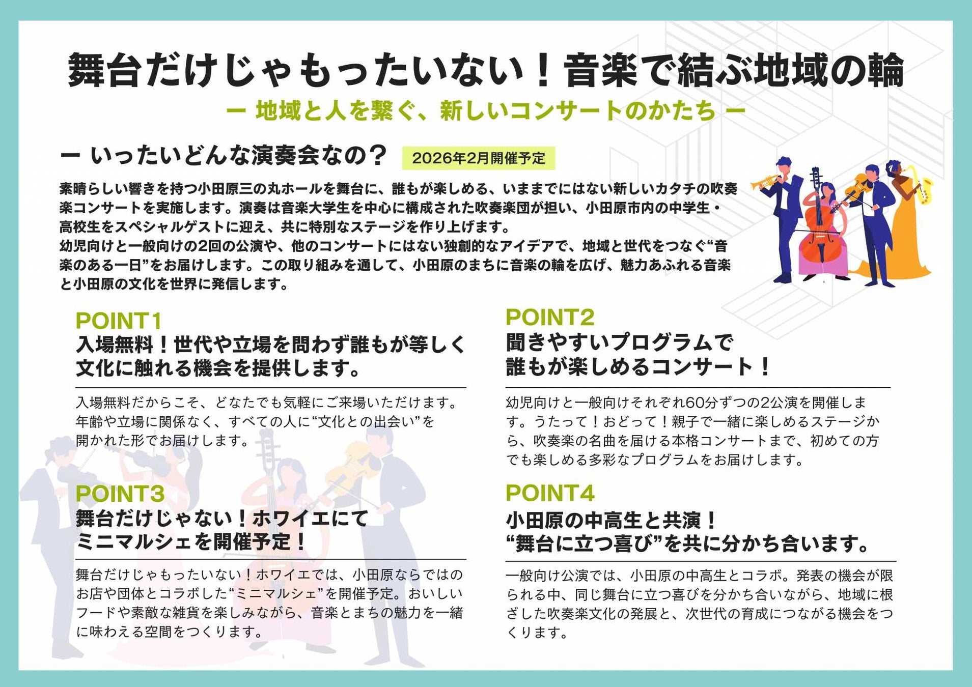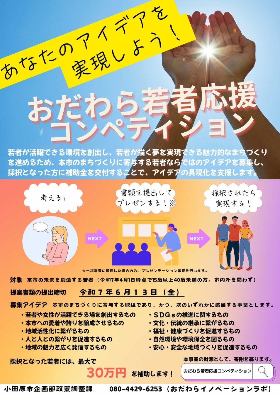本市では、若者が描く夢を実現できる魅力的なまちづくりを進めるため「おだわら若者応援コンペティション」を実施しています。