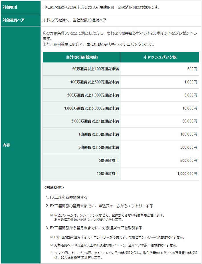 【松井証券 FX】キャッシュバックキャンペーンを12月2日より開催!対象通貨ペアの新規取引で最大100万円キャッシュバック