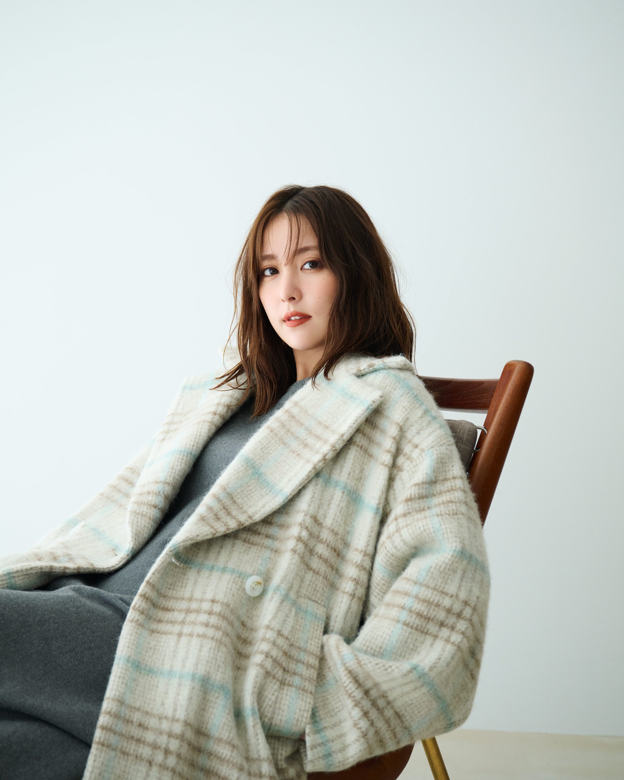 ニュアンスカラーのチェック柄とオーバーシルエットが洒落感を誘う
