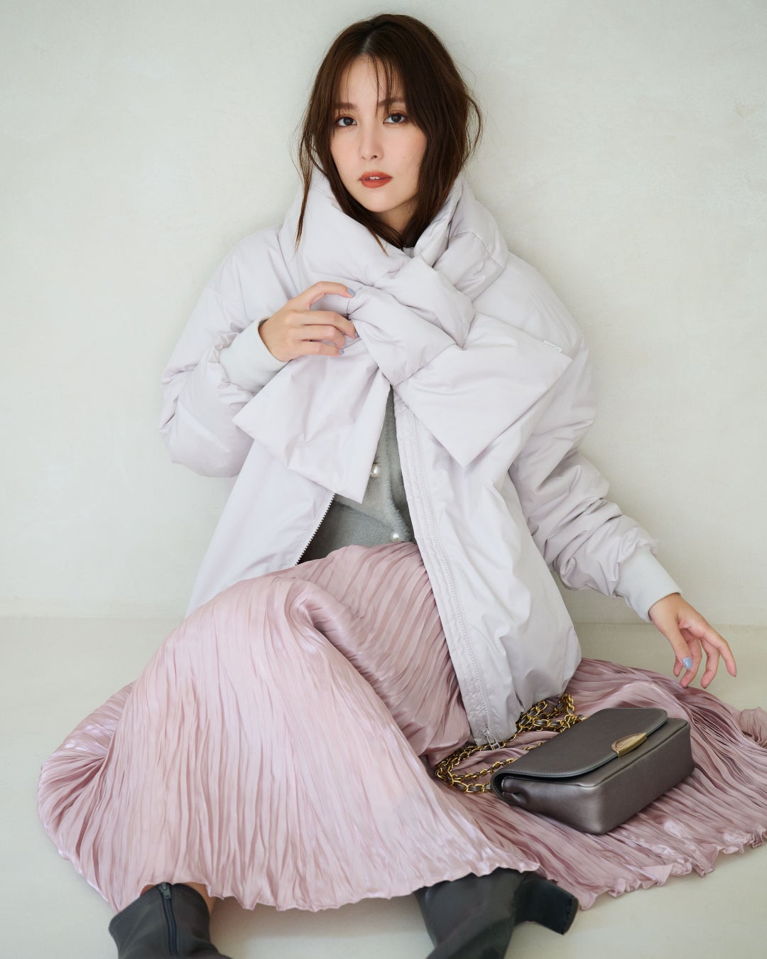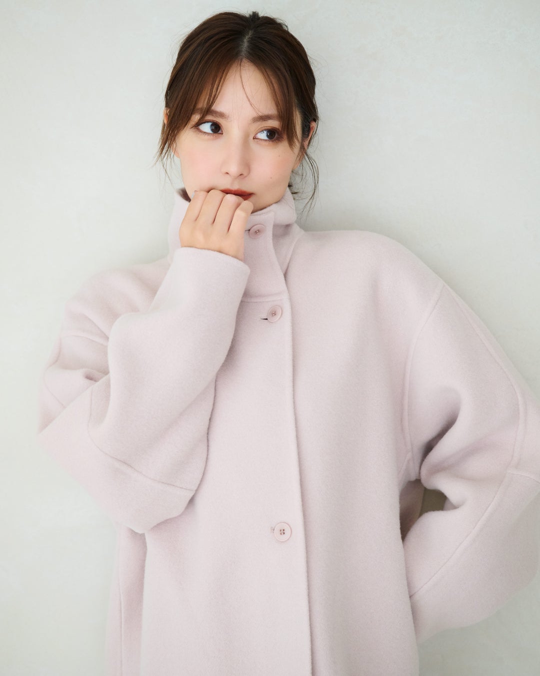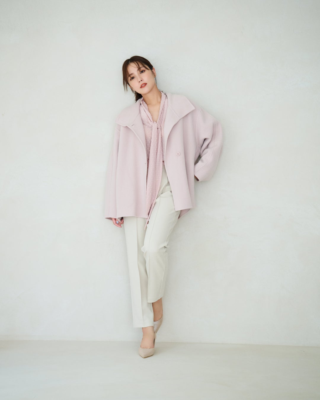 品のあるピンクとスタンドカラーが大人をとびきり可愛く魅せてくれる