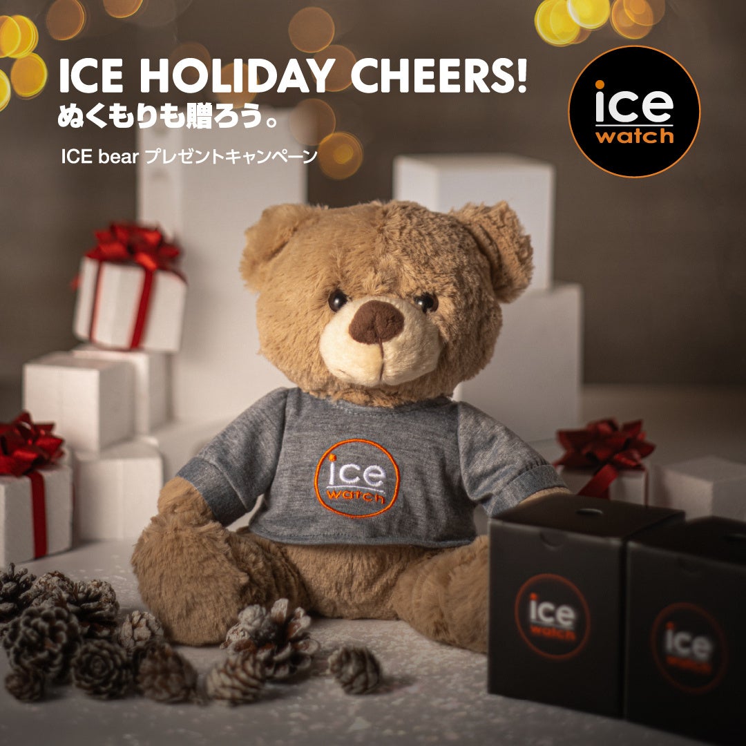 「ICE champagne」発売日より、全国のアイスウォッチ取扱店にて、特別キャンペーン『ICE Holiday Cheers!』を開催。税込17,600円以上のご購入で、アイスウォッチオリジナルTシャツを着た限定ぬいぐるみ「ICE bear(アイスベア)」をプレゼント。