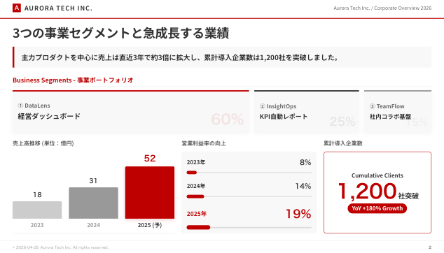 2024年7月のリリース以来、登録ユーザー数は15万人、法人企業の導入社数は80社を突破。ニュース記事の要約動画作成、SNS向けコンテンツ制作、社内研修資料の動画化など、幅広い用途で活用されており、日本発の動画生成AIプロダクトとして日本最大級の規模を誇ります(2026年3月時点)※。