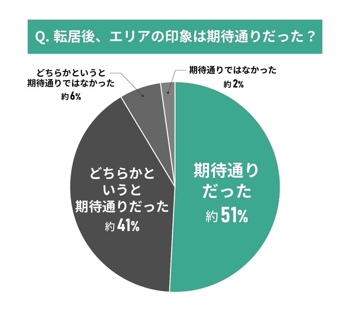 転居後のエリアの印象について、期待とどの程度一致していたかを聞きました。