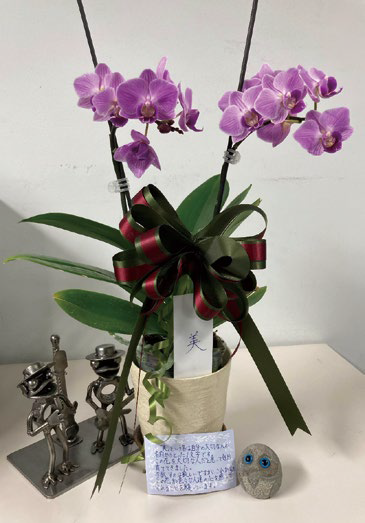 そこで、日本フィランソロピー協会は、胡蝶蘭の花を咲かせ、その花をこども病院や児童養護施設、難民支援団体などに寄贈するプロジェクトを始めました。贈呈式をおこない、寄贈先の方から感謝の言葉を述べていただきます。少年たちは「この花を見ている間は、病気のことは忘れてください」、「大事にしてあげてください」などのメッ セージを添えて贈ります。このささやかな体験が少しでも彼らの生きる支えになればと願っています。