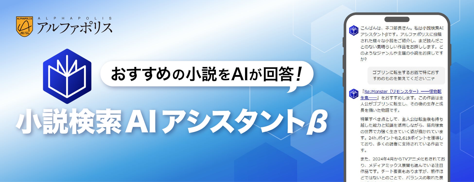 株式会社アルファポリス(本社:東京都渋谷区、代表取締役社長:梶本雄介)は、当社が運営する小説・漫画の投稿サイト「アルファポリス」において、AWSの生成AIサービス「Amazon Bedrock」を活用した、生成AIによる対話型の小説検索機能『小説検索AIアシスタントβ』を2024年11月11日(月)にリリースいたしましたので、お知らせいたします。