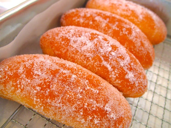 焼きたてパンを工場から直送するとともに店舗で揚げたて「あげぱん」も提供します。