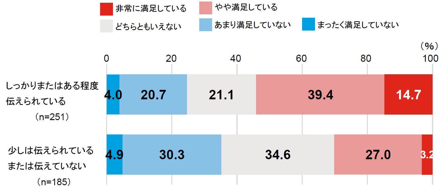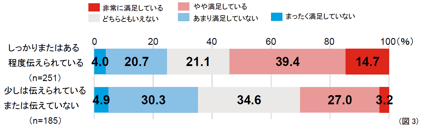 なお、治療に非常に満足している割合について、生活上の困りごとについて医師に話せている程度で比較すると、“しっかり”または“ある程度”伝えられている患者さんでは14.7%、“少し”または“伝えられていない”患者さんでは3.2%でした(図3)。