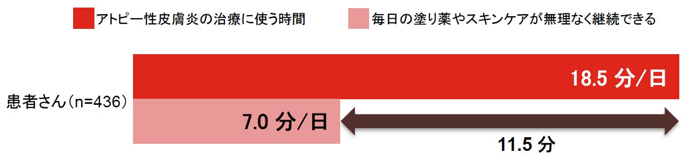 Q:あなたが毎日、塗り薬を塗ったりスキンケアをしたりするなど、アトピー性皮膚炎の治療に使う時間は何分くらいですか?