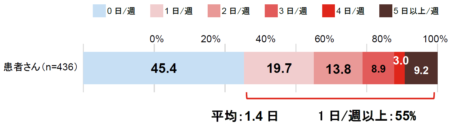 Q:アトピー性皮膚炎(/あなたが肌)のかゆみによって睡眠を妨げられた日は週に何日ありましたか?この1年間の平均的な1週間でお考えください。