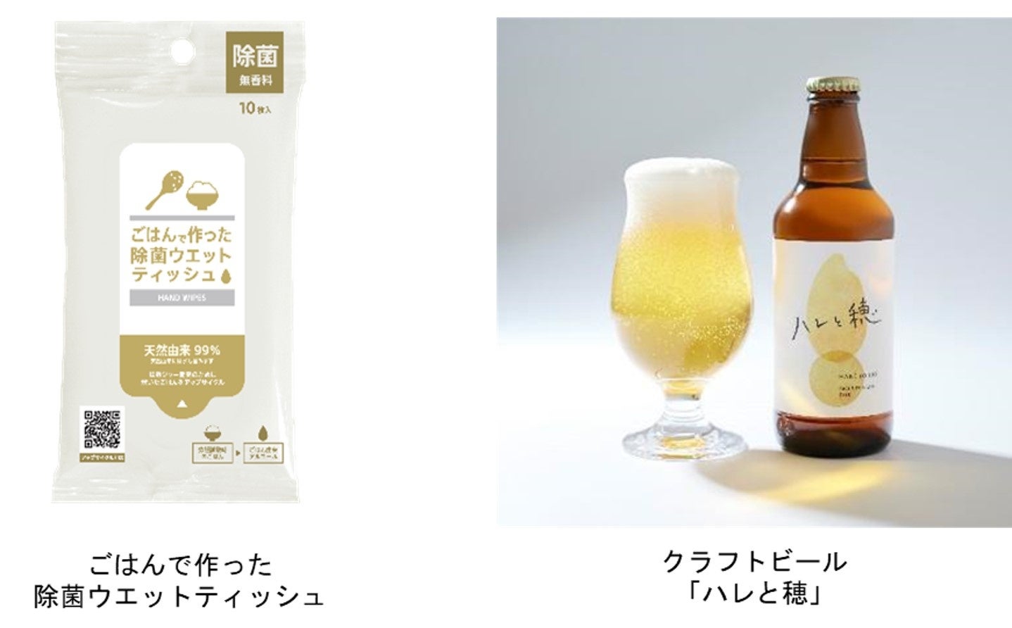 そんな中、第1弾として、2021年に株式会社ファーメンステーションと共創し、ごはんから精製した発酵アルコール(エタノール)を使った天然由来成分99%の「ごはんで作った除菌ウエットティッシュ」を商品化しました。