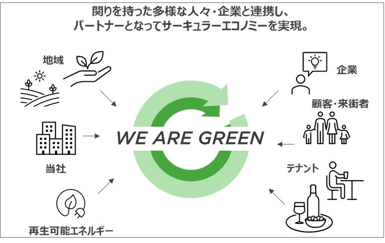 東急不動産ホールディングスは2021年に長期ビジョン「GROUP VISION 2030」を発表しました。多様なグリーンの力で2030年にありたい姿を実現していく私たちの姿勢を表現する「WE ARE GREEN」をスローガンに、「環境経営」「DX」を全社方針として取り組んでいます。