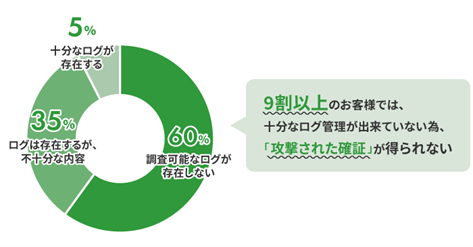 GSXでは、サイバーセキュリティ被害にあったお客様の事故対応相談を年間約300件以上お受けしております。その中の9割は、ログ管理が十分ではなく、事故原因の特定が困難であるため、効果的な対策を施すことができません。また、多くの企業において、ログ保管は出来ていても、セキュリティ人材の不足・ノウハウの不足から、実効性のある運用管理を実現出来ていない課題を抱えています。