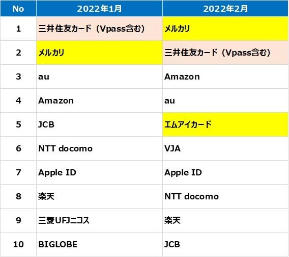 エムアイカードが圏外からランクイン、新生活需要前の予兆かメルカリかたるフィッシングは前月比倍増、6ヵ月連続上昇で最多