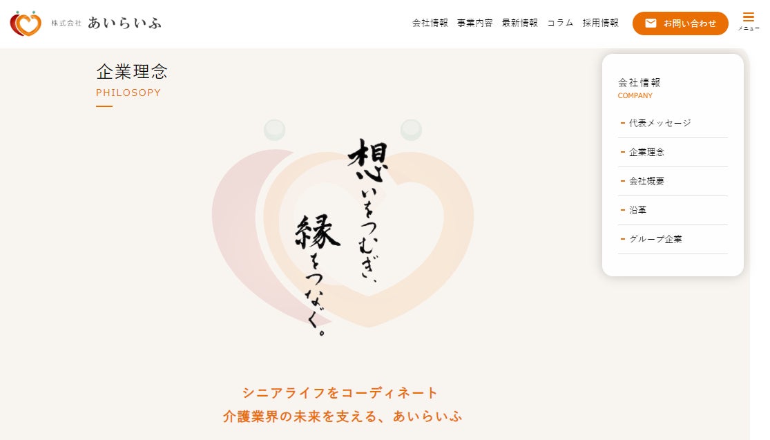シニアライフをトータルにサポートする株式会社あいらいふ コーポレートサイトをフルリニューアル