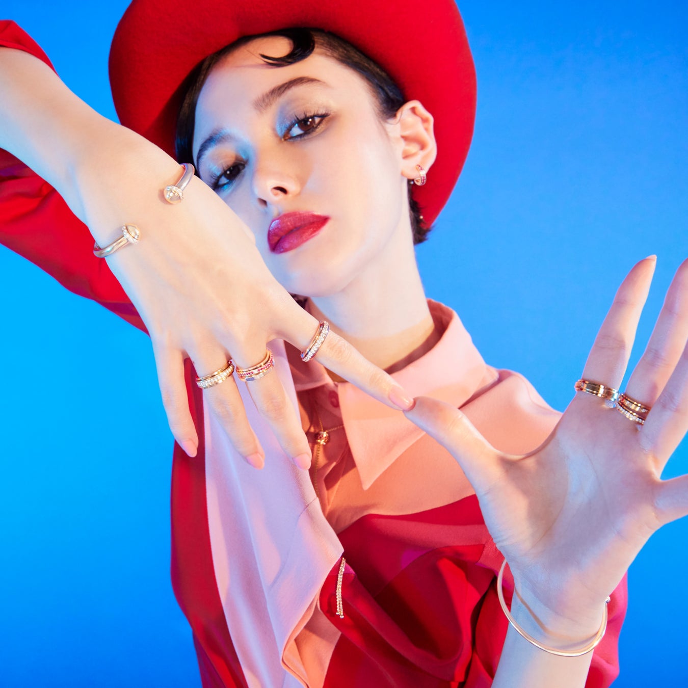 モデル、女優として活躍する玉城ティナは、その演技力の高さが評価され数々の話題作に出演する他、昨年には自ら脚本を書き初の映画監督に挑戦するなど、多彩な才能を開花させています。1つの枠にとらわれず、さまざまな挑戦を続け活躍の場を広げる玉城の姿は、身に着ける人の多彩な魅力を輝かせる、カラフルでプレイフルな「ポセション」 コレクションのコンセプトを見事に体現しています。