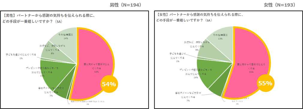 Q. パートナーから感謝の気持ちを伝えられる際に、どの手段が一番嬉しいですか?