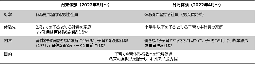 育児介護休業法の改正にあわせ「育児/育業体験」制度を導入