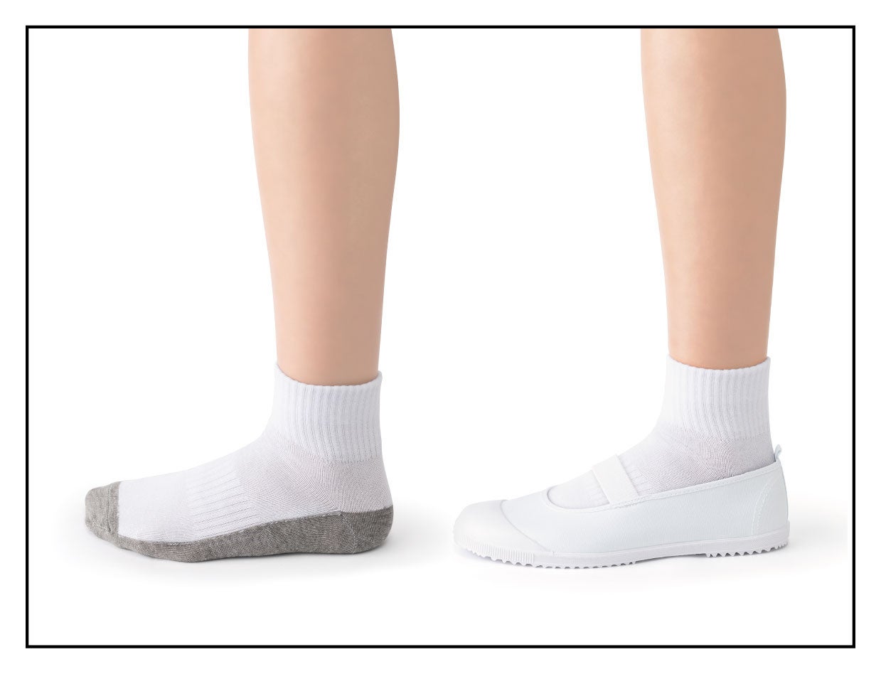 そこで足底の汚れが目立ちにくく、毎日の洗濯が楽になる足底グレーソックスをご提案。上履きをはくとグレー部分は隠れます。