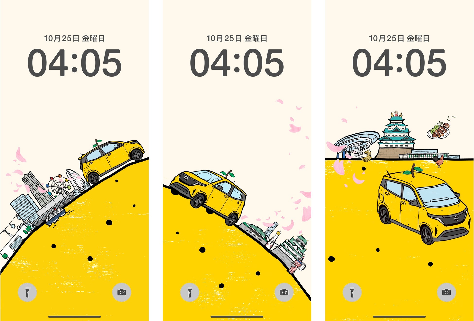 昨年10月より全国の日産の販売店にて掲出し、多くの方にご好評いただいた「47都道府県 地元限定ポスター」を、お手元でもお楽しみいただくため、ポスターデザインを元にしたスマートフォン用の「47都道府県別 スマホ壁紙」を制作。特設サイトで無料ダウンロードいただけるようになりました。