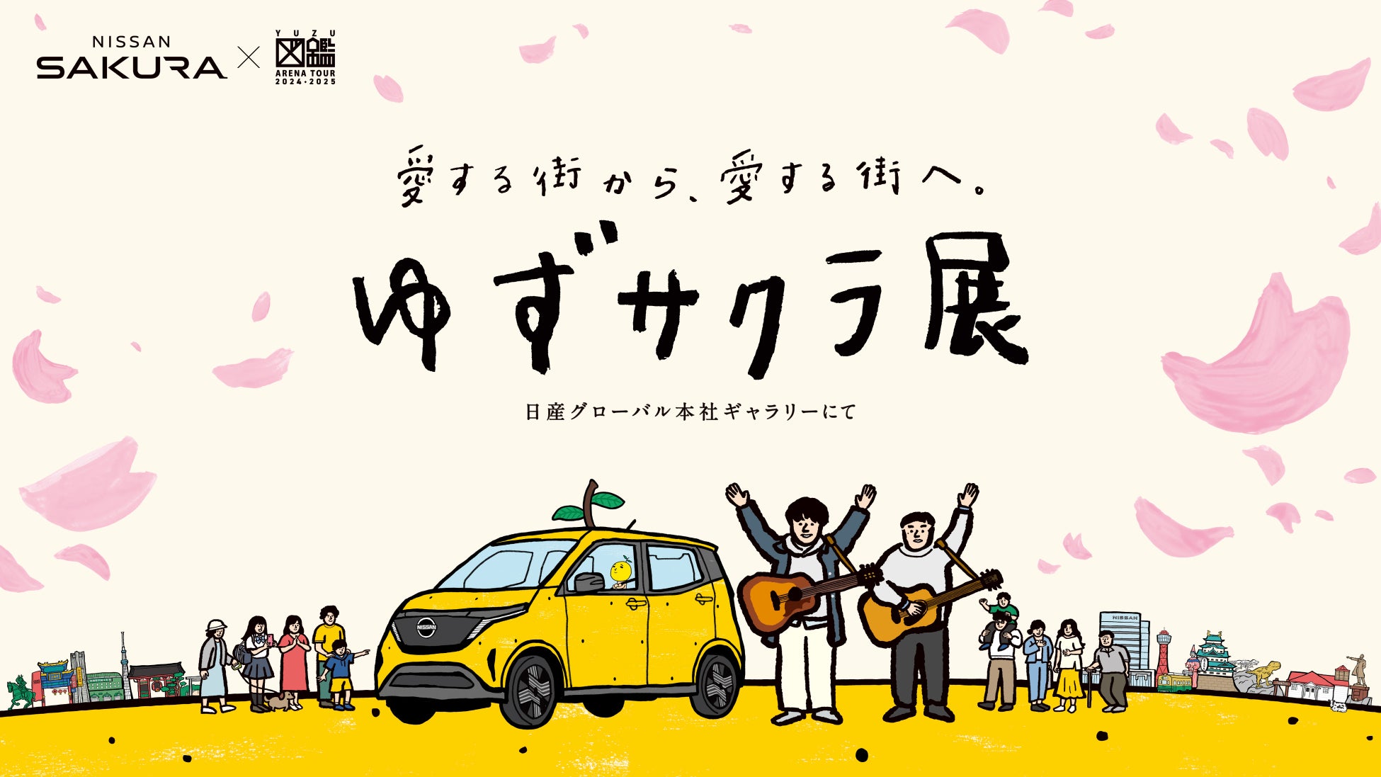 日産自動車株式会社(本社:神奈川県横浜市西区、以下:日産)は、軽の電気自動車「日産サクラ」と人気アーティストゆずの全国ツアー『YUZU ARENA TOUR 2024-2025 図鑑』とのコラボレーション企画「愛する街から、愛する街へ。 #ゆずサクラ 2.0」のフィナーレを飾る取り組みとして、2025年2月18日(火)より日産グローバル本社ギャラリーで「ゆずサクラ展」を開催するとともに、2025年2月17日(月)18時より新コラボグッズ「ゆずサクラトミカ」をYUZU Official Storeにて先行販売開始します。