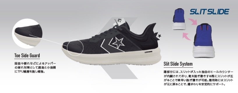コンバースより、手を使わずに脱ぎ履きができるハンズフリーシューズ「スリットスライド」シリーズから2026年春夏シーズンの新色が登場。現在、CONVERSE OFFICIAL ONLINE SHOPおよび全国の一部取扱店舗にて発売中です。