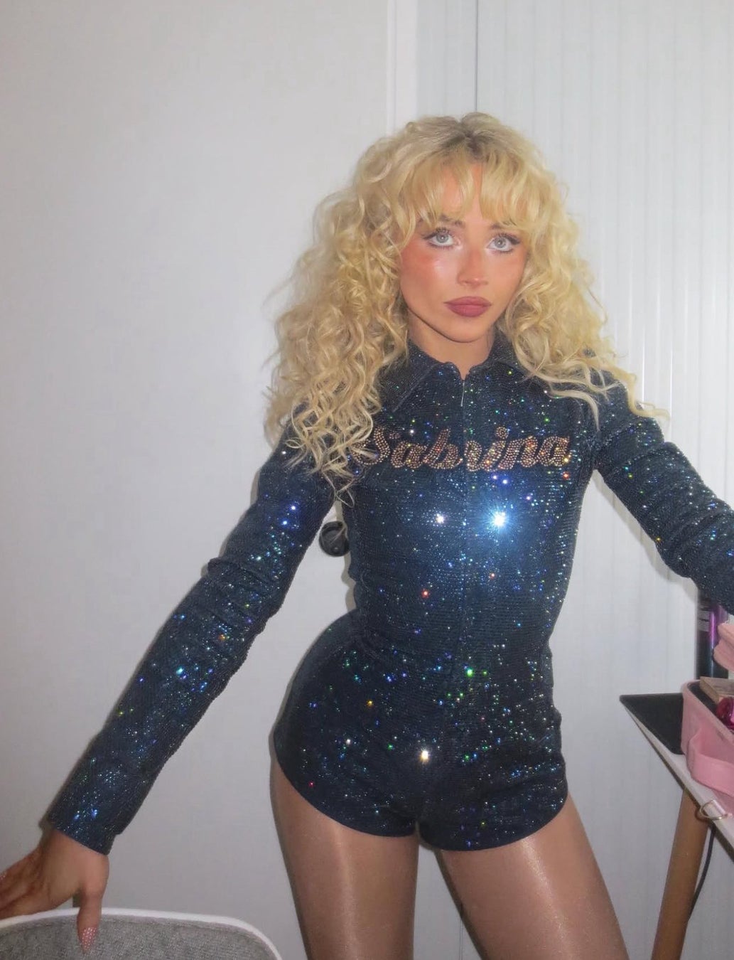 2025年6月6日にスペイン・バルセロナで開催された「プリマヴェーラ・サウンド 2025」にて、歌手で俳優のサブリナ・カーペンターが、クリスタルを施したインディゴデニムの、ロエベ カスタムジャンプスーツを着用しました。
