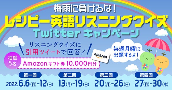 『梅雨に負けるな!英語リスニングクイズTwitterキャンペーン開催』2022年6月6日(月)~6月30日(木) - 英語学習アプリ レシピー ( ポリグロッツ )