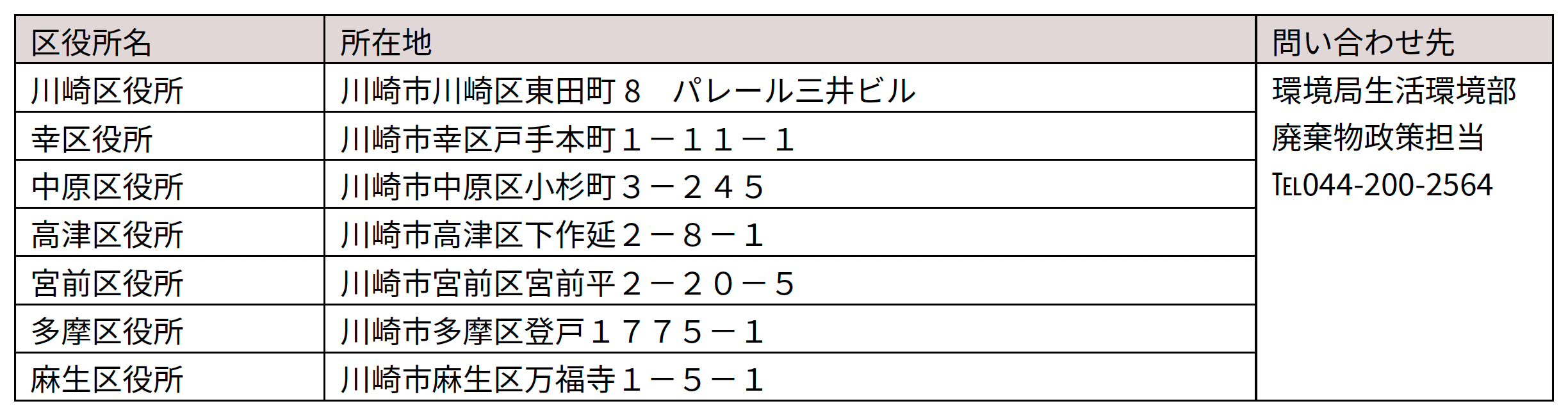 回収場所:川崎市の区役所7ヵ所