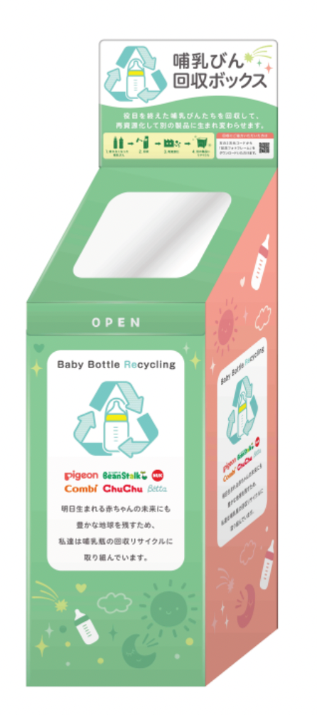 回収方法:ご家庭で使わなくなった哺乳器を洗浄・乾燥のうえ、回収ボックスへ持参いただく