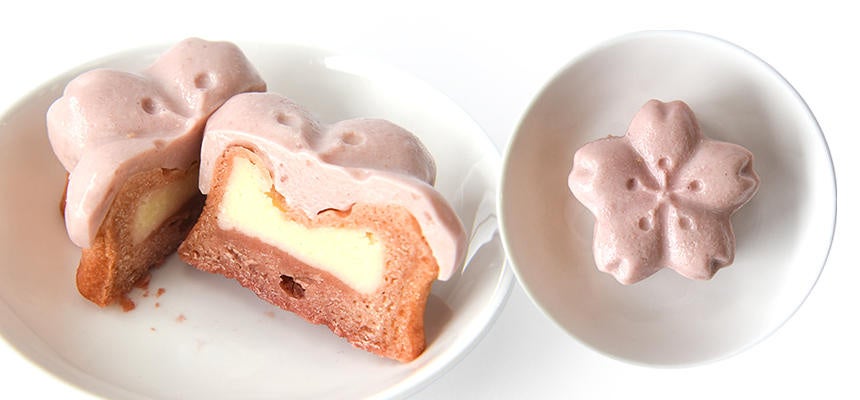 中にクリームチーズと白餡を入れた桜型のかわいいミニケーキ。デコレーションはクリームチーズにビーツを混ぜたゼリーでぷっくりとした桜に仕上げました。かわいいミニケーキと写真を撮って春を感じてください。(内容量:40g、サイズ:直径約5cm、価格:880円(税込)、原産国名:日本)