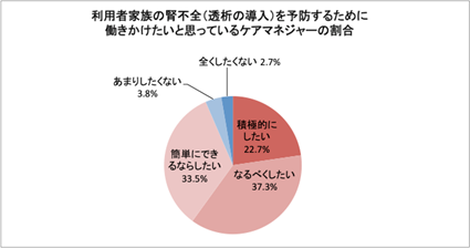 また、ケアマネジャーは腎不全と透析予防のための働きかけに前向きであることも分かりました。