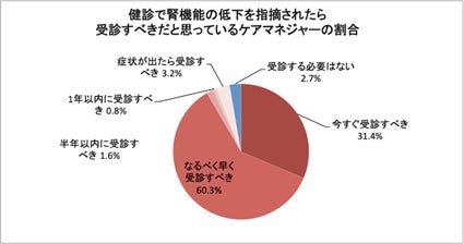 本調査の結果、ケアマネジャーは腎機能の低下に対して受診の必要性を強く感じていることが明らかになりました。
