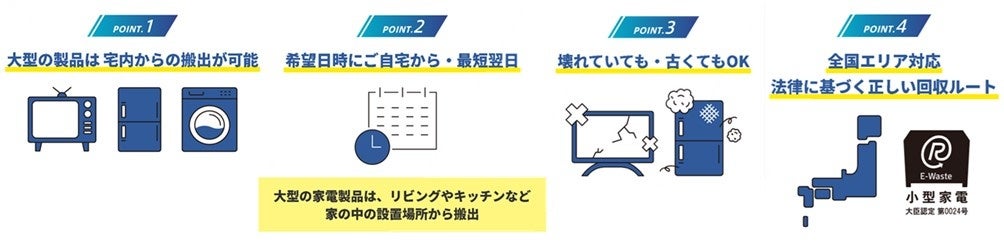 こうした課題への対応を目的として、両社はさまざまな廃家電の処分手続きをまとめて行えるプラットフォームを開発し、2022年12月からサービスを提供しています。これまでに全国106の自治体(人口換算で約790万人)と協定の締結に至りました。連携する自治体においては、自治体が発行する各種媒体を通じて、便利で簡単に正しく処分できる方法として本サービスの活用・周知を予定しています。